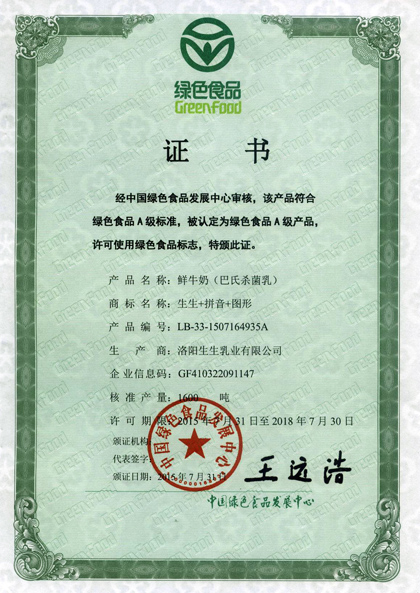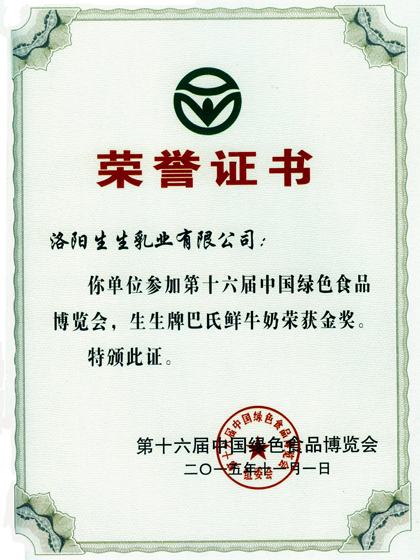 生生乳業(yè)代表河南洛陽展團(tuán)參加在西安舉辦的第十六屆中國綠色食品博覽會(huì),生生牛奶在展會(huì)上獲得領(lǐng)導(dǎo)的好評(píng)和消費(fèi)者們的贊譽(yù),生生巴氏鮮牛奶榮獲綠博會(huì)金獎(jiǎng)稱號(hào)。